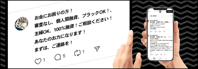 最近ではSNSを利用したLINE闇金、Twitter闇金、Instagram闇金などが主流になっています。